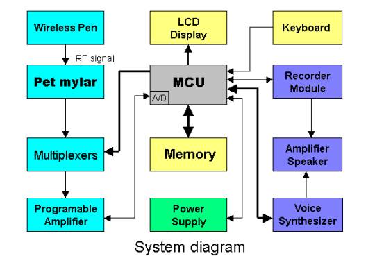由上图可知,导电薄膜电子书同样由坐标检测模块、语音模块、单片机及周边部件和电源模块构成。